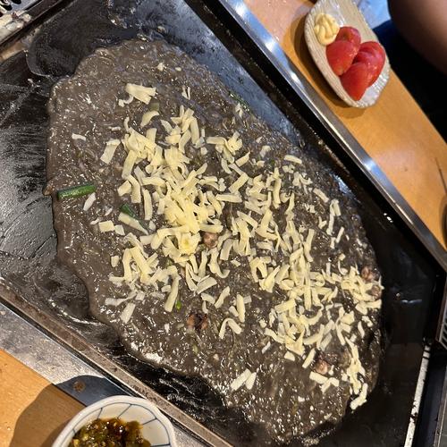 もうひとつ忘れてはいけないのが、真っ黒な見た目がインパクト抜群の イカ墨もんじゃ。