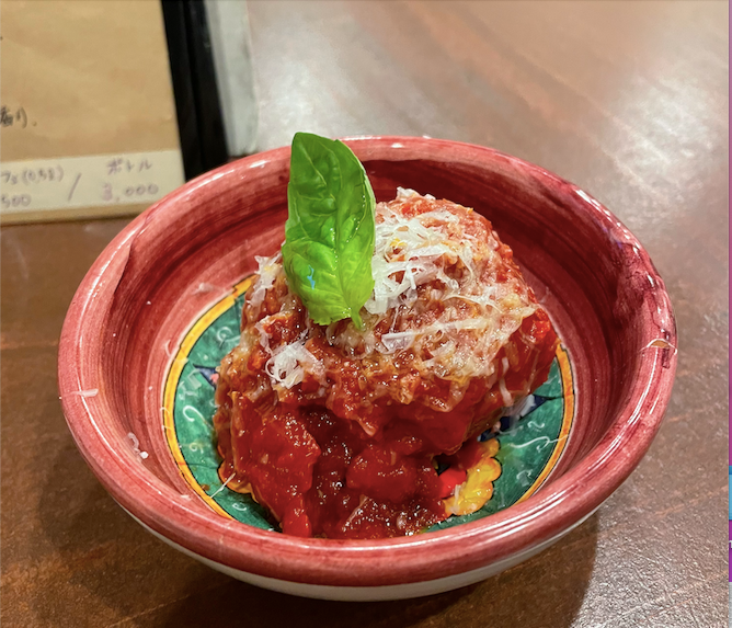 お店の看板メニューである「ポルペッティ=ミートボール」は、一口食べれば誰もが笑顔になるおいしさです。フォークを入れると、その名の通りふわっとした柔らかさに驚きます。口に運ぶと、肉の旨味がぎゅっと詰まっていて、じっくり煮込まれたトマトソースとの相性が抜群。この味が忘れられなくて、また足を運びたくなってしまうんですよね。他にも、店主の出身地である南イタリア・カラブリア州の家庭料理をベースにした、日本では珍しいメニューがたくさんあります。例えば、「イワシのブットゥナーテ」や揚げパンのような「ゼッポリーネ」など、どれも素材の味を活かした素朴で温かみのある味わいです。