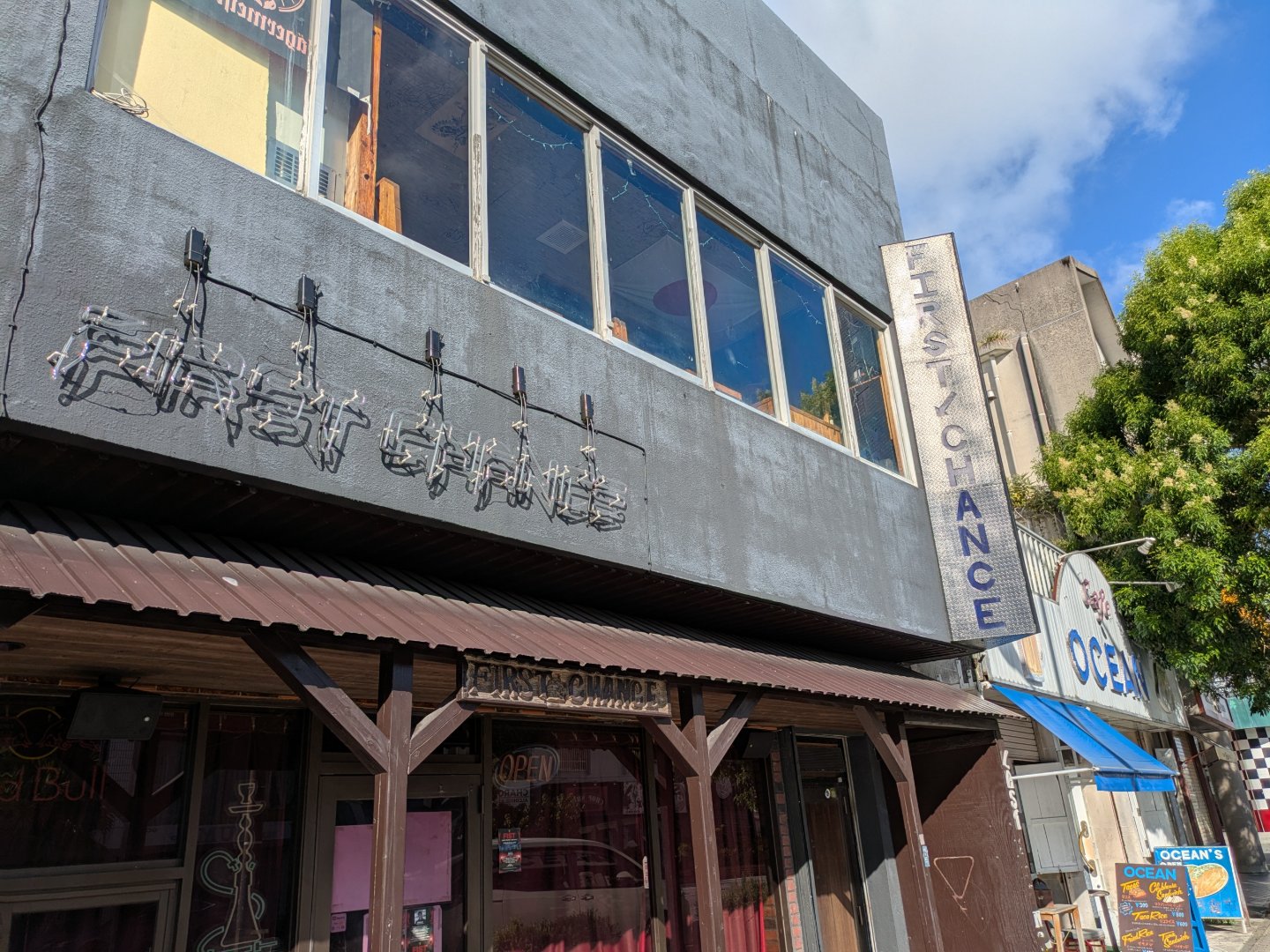 ファーストチャンスは、「最初にここで飲んでいかない?」、ラストチャンスは「最後にここでもう1杯どう?」っていうアメリカンジョークたっぷりの看板ですね。
