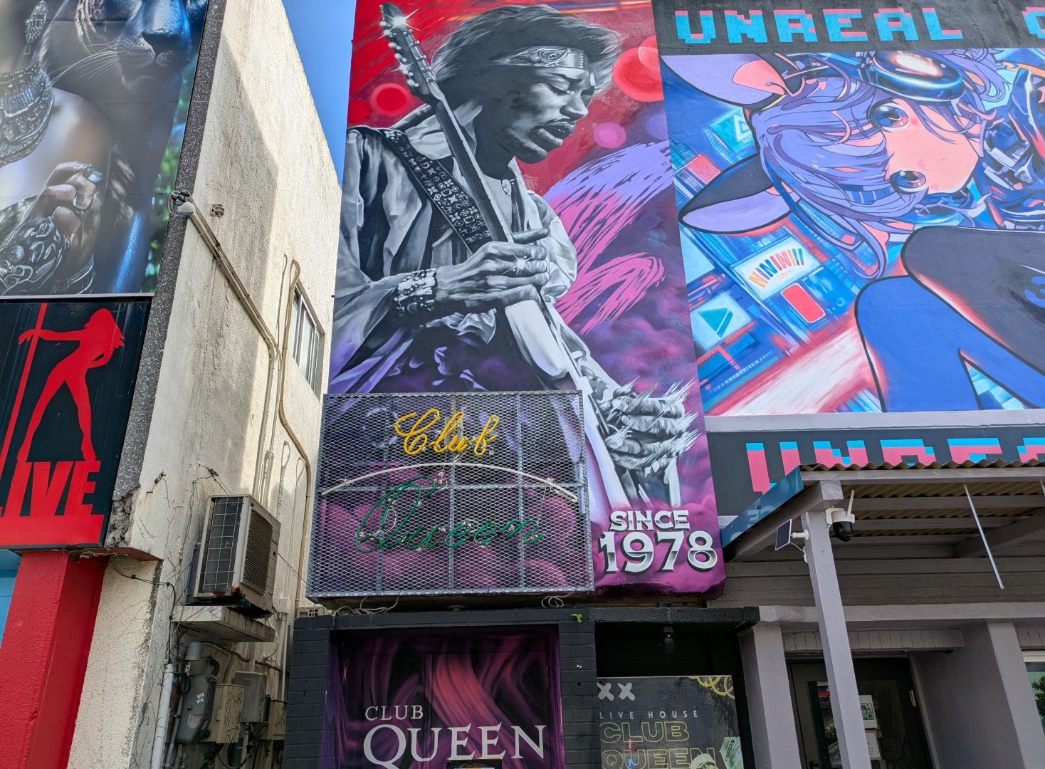 コザミュージックタウンから通りを少し歩くと、左手に見えてくるのがギターの神様ジミ・ヘンドリックスの大きな壁画。