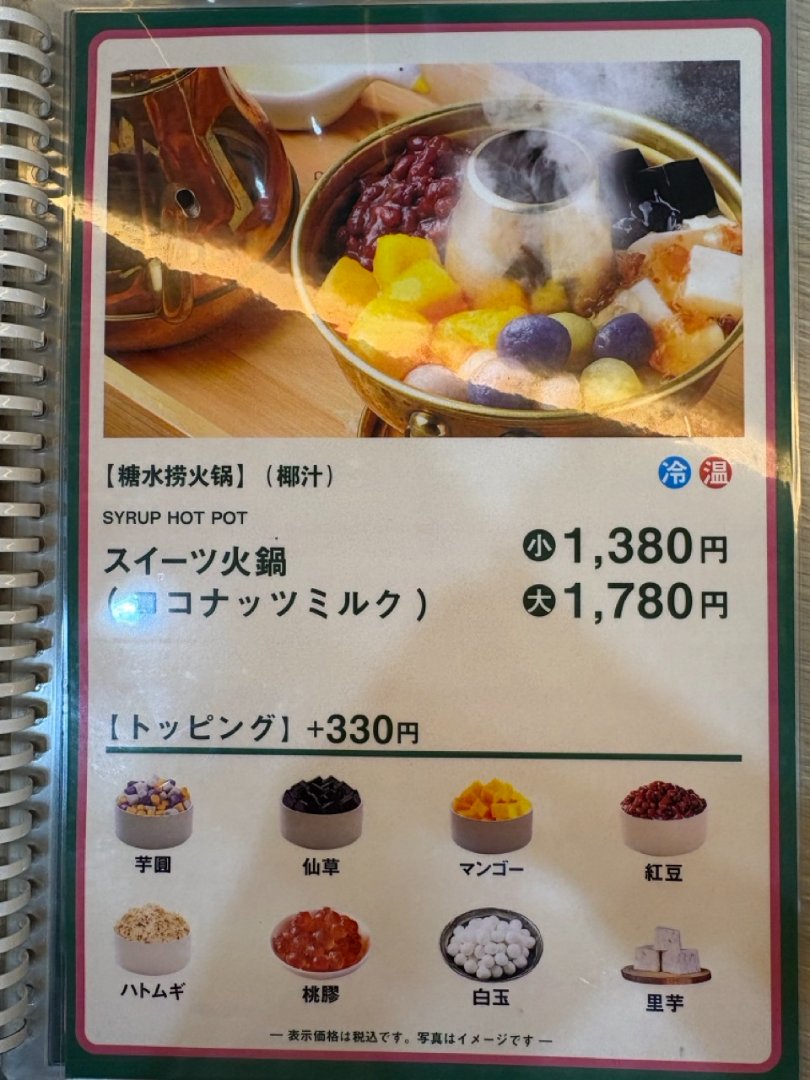 スイーツ火鍋(次回のターゲット):メニューで見つけたんだが、フルーツがどっさり入る甘い鍋らしい。ちょっとお高めだけど、話のネタにもなるし、次は絶対チャレンジしたいと心に決めてる(笑)。
