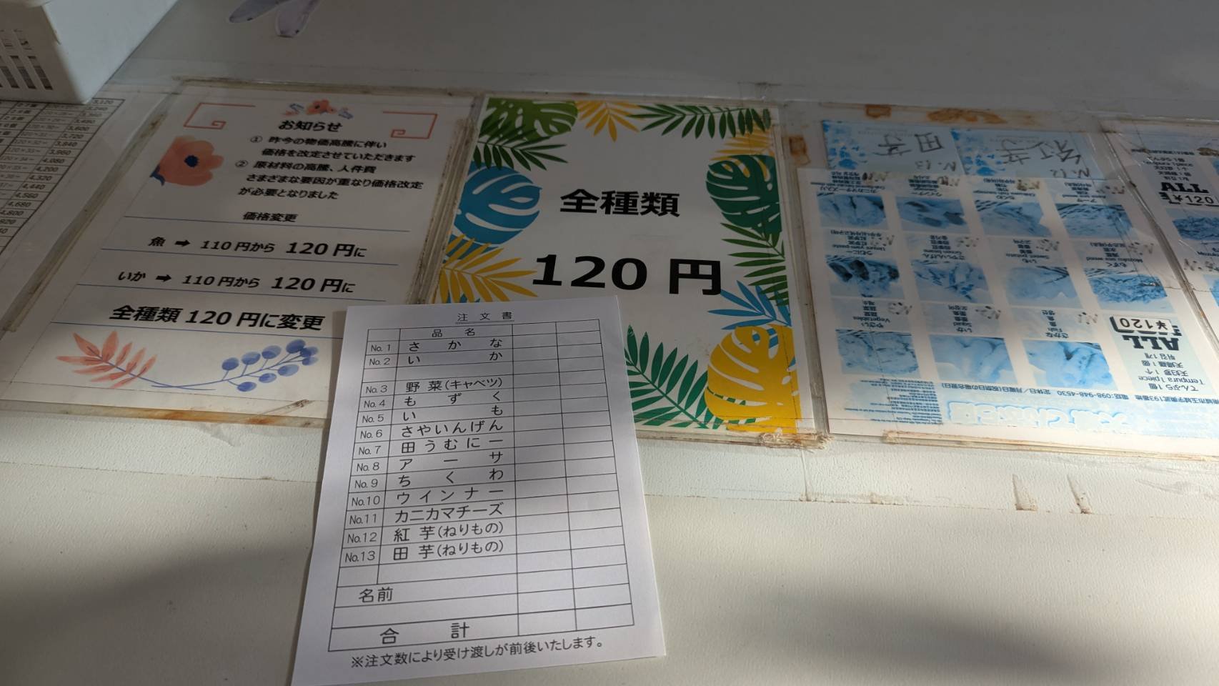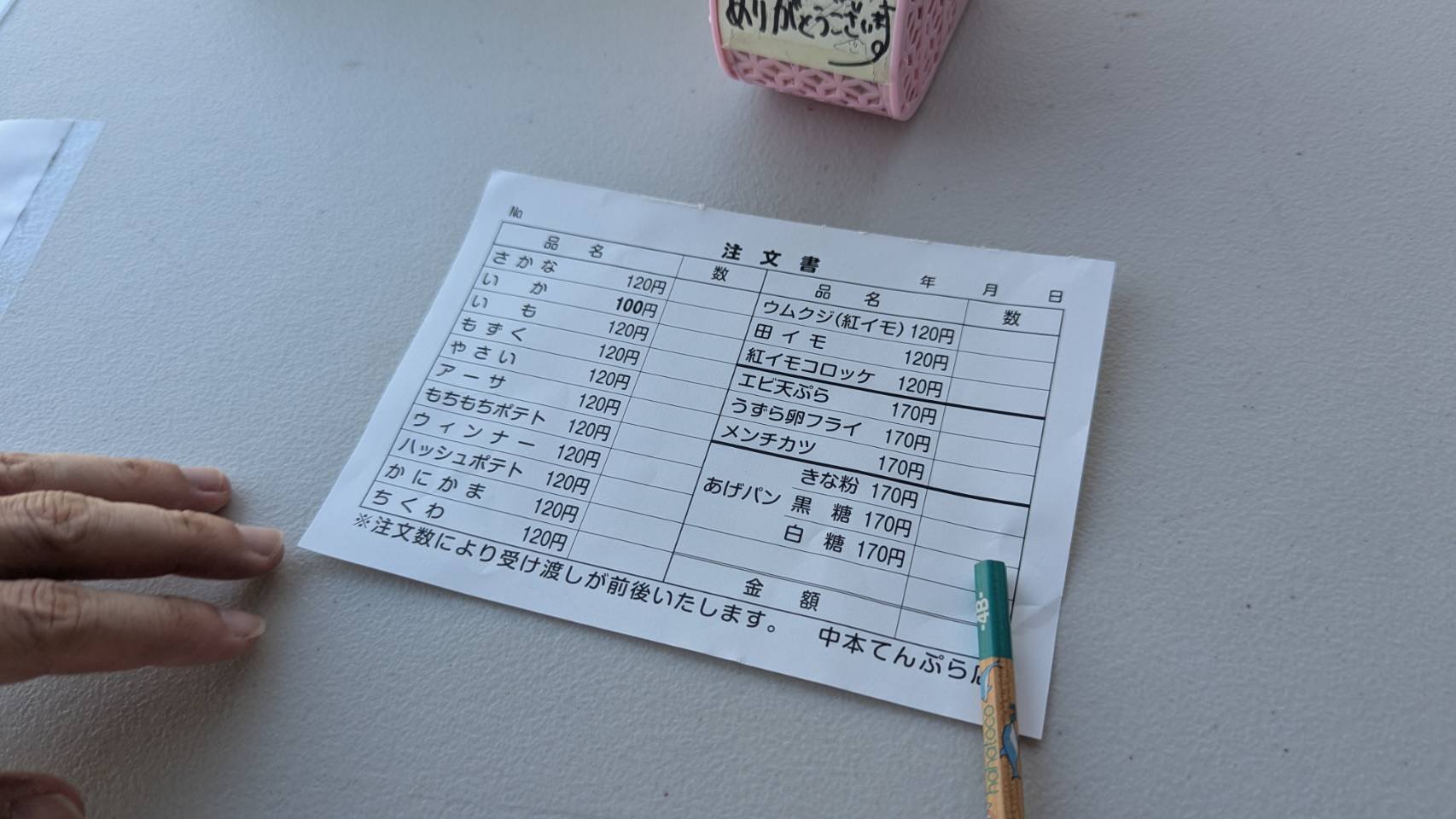 奥武島の天ぷら店は注文票に記入して注文する形式です。