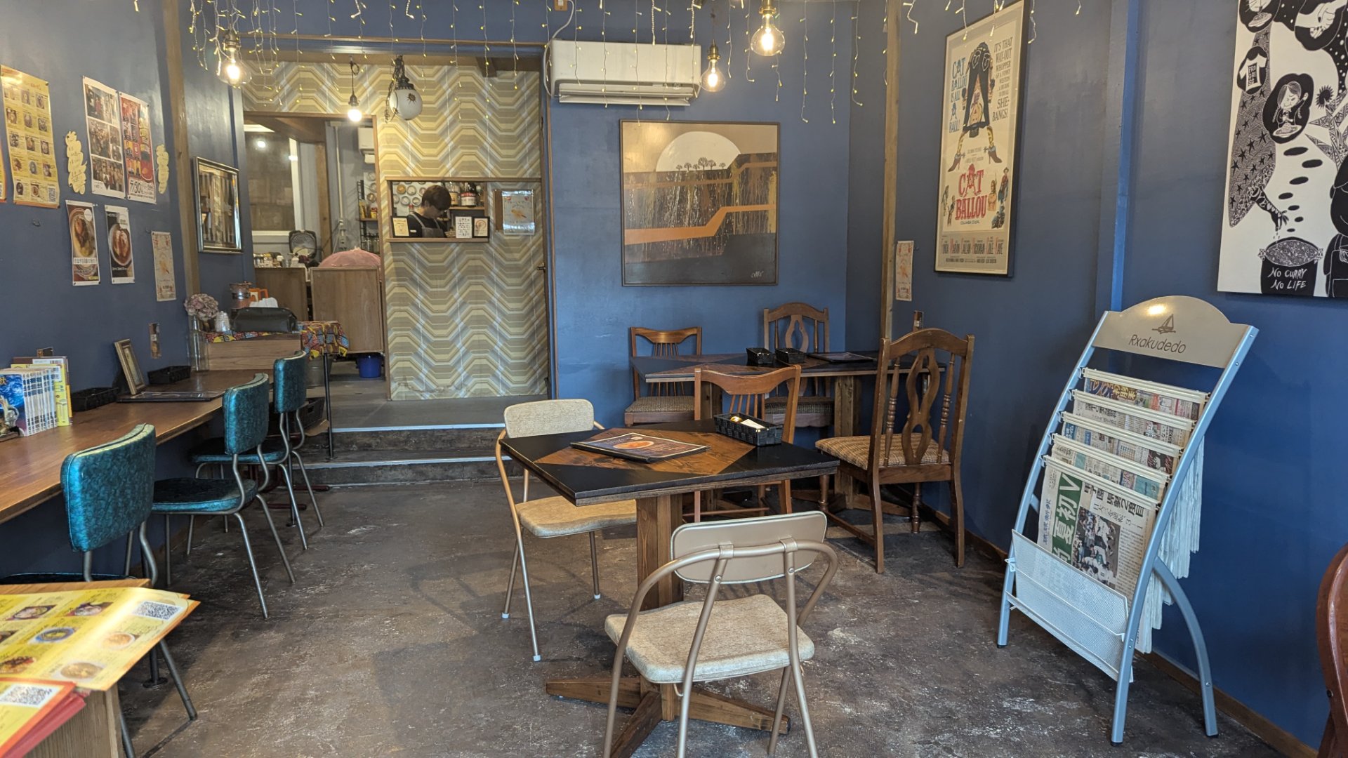 レトロポップなポスターやアンティーク調の家具が並んでいて、まるで小さなギャラリーのようなおしゃれさです。