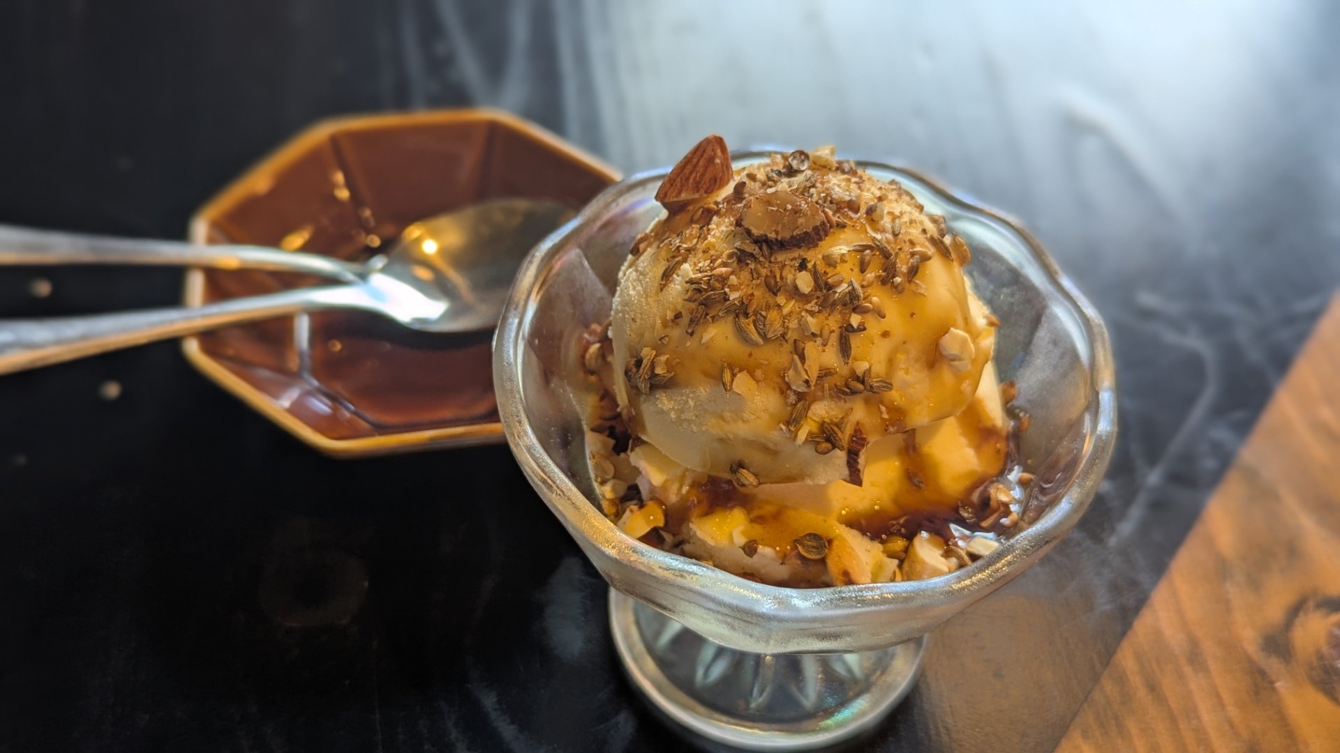 さらに、アイスにスパイスをちょっと振ったデザートもあって、それがまたまた美味しい。。