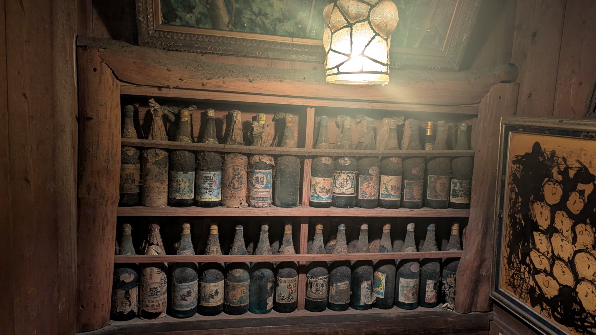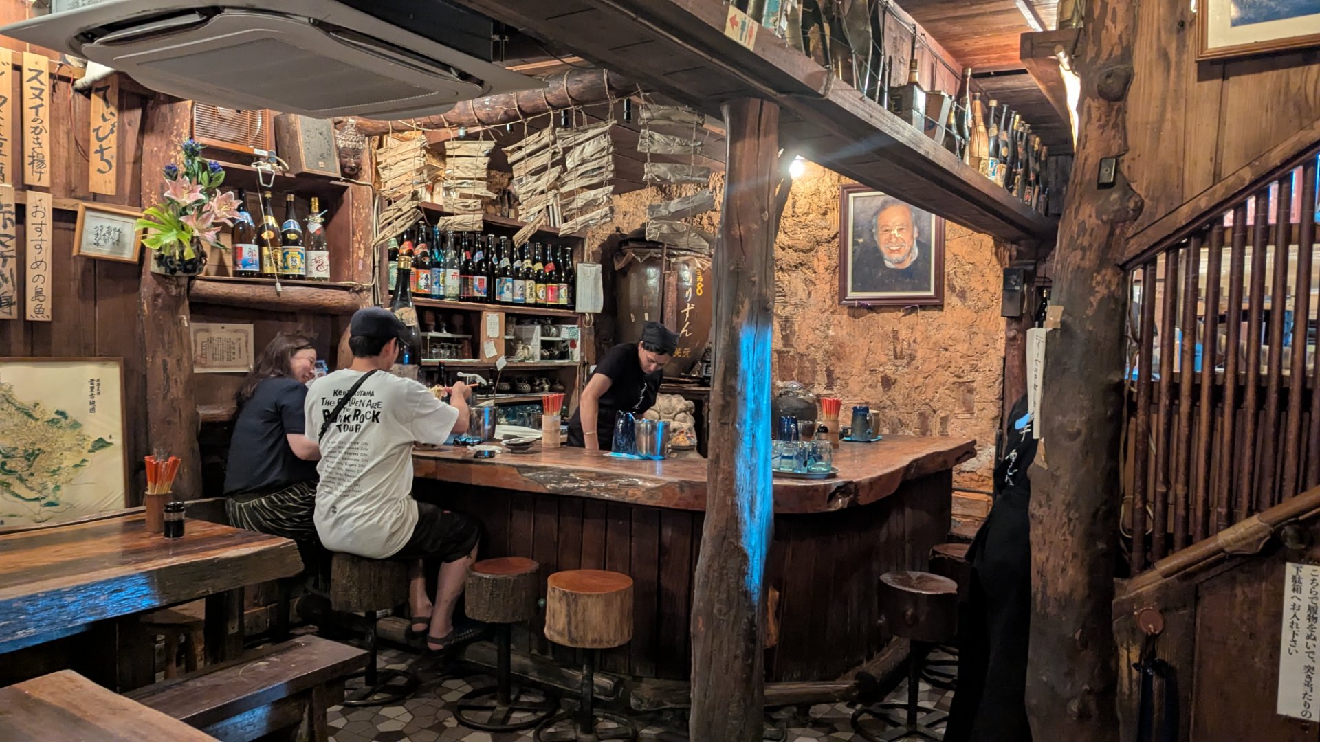 店内にもこんな感じでたくさんの泡盛が飾られていて、今では手に入らないものや、1本100万以上の値が付くものまであるそう。
