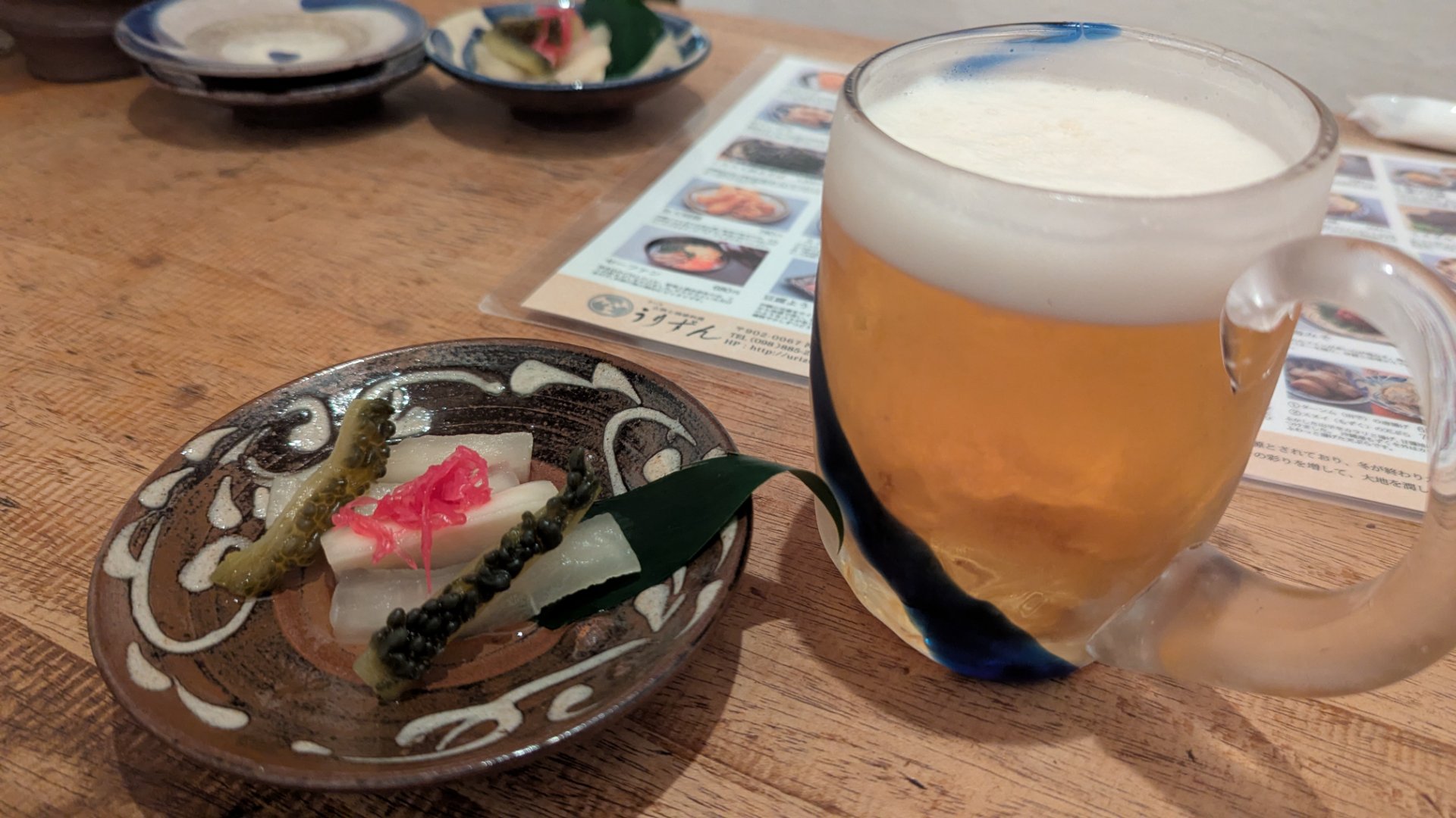 ちなみに、うりずんでは料理やドリンクがやちむんや琉球グラスで提供されます。至る所で沖縄の文化が感じられ、おもてなしの心が伝わってきて素敵!
