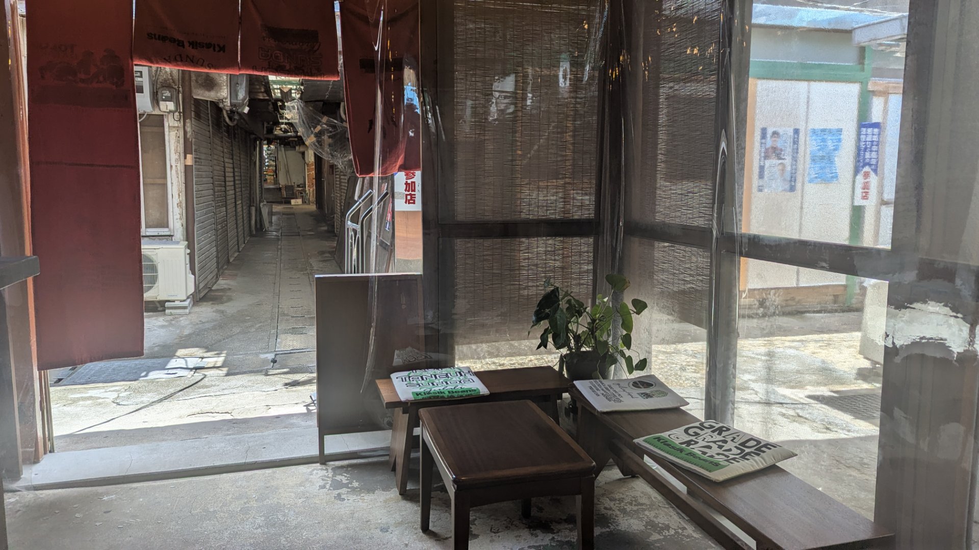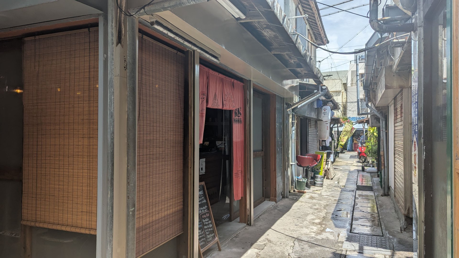 まだ昼はシャッターが閉まっている店も多い中で、暖簾が揺れるお店を発見。
