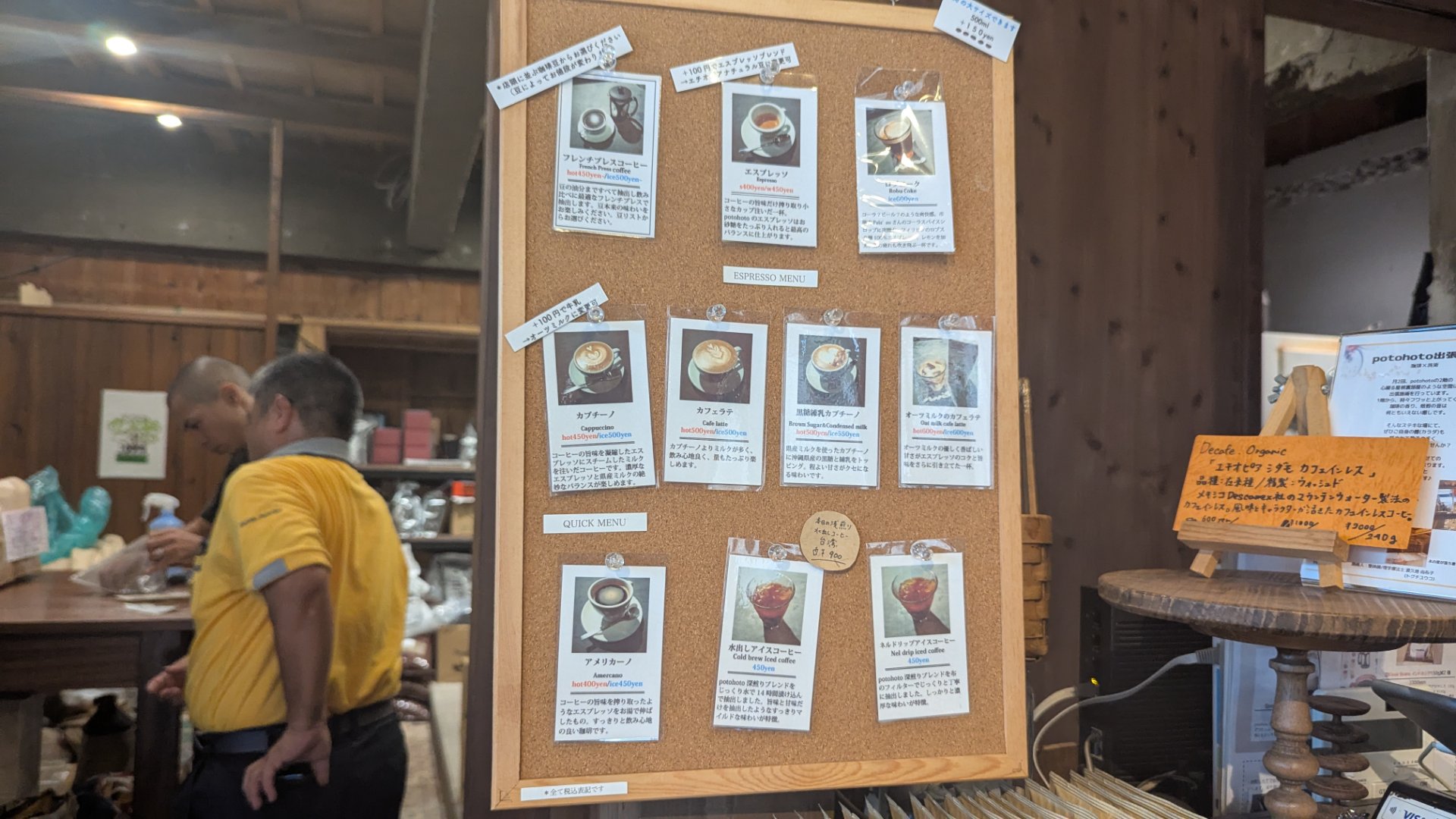 今回はフレンチプレスコーヒー(豆はコスタリカ)とネルドリップアイスコーヒー(豆はpotohoto深入りブレンド)を注文。